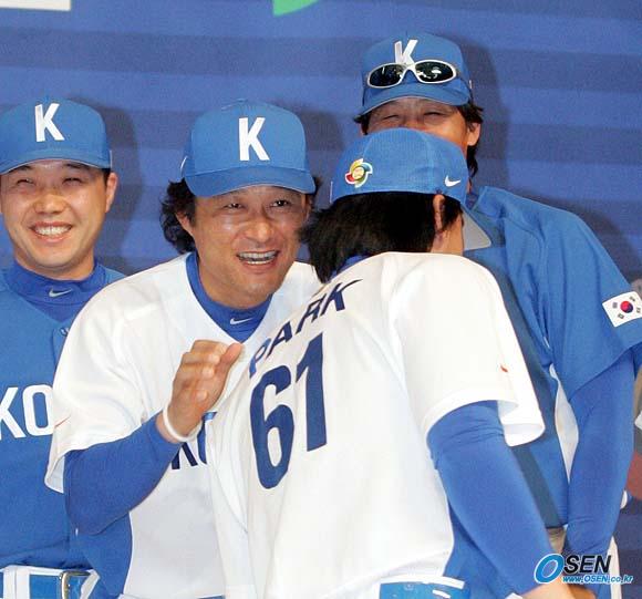 한국야구위원회는 9일 오후 서울 잠실 롯데월드호텔서 오는 3월 일본 도쿄돔에서 벌어지는 WBC 1라운드에 출전할 한국대표팀 오리엔테이션 및 미디어데이 행사를 가졌다. 행사가 끝나고 박찬호가 이종범과 귓속말을 나누고 있다./손용호 기자 spjj@osen.co.kr [Copyright ⓒ 한국 최고의 스포츠 전문 미디어 OSEN(www.osen.co.kr) 무단전재 및 재배포 금지]
