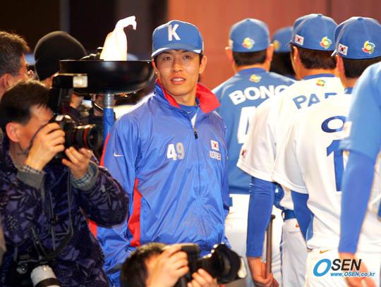 한국야구위원회는 9일 오후 서울 잠실 롯데월드호텔서 오는 3월 일본 도쿄돔에서 벌어지는 WBC 1라운드에 출전할 한국대표팀 오리엔테이션 및 미디어데이 행사를 가졌다. 행사가 끝나고 선수들이 퇴장하는 가운데 김병현이 혼자 뒤를 돌아보고 있다./주지영 기자 jj0jj0@osen.co.kr [Copyright ⓒ 한국 최고의 스포츠 전문 미디어 OSEN(www.osen.co.kr) 무단전재 및 재배포 금지]