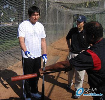 지난해 11월 6일(이하 한국시간)의 일이다. 이날 최희섭(27)은 타격폼 교정 훈련 공개와 시즌 결산 인터뷰를 겸해서 현지의 한국기자들을 레지 스미스 야구센터로 초청했다. 여기서 최희섭은 시카고 컵스 시절부터 은사였던 레온 리 전 오릭스 감독과 레지 스미스 전 다저스 타격코치를 초빙, 약점으로 지적되던 바깥쪽 공 대처 훈련을 집중 연마했다(사진). 그런데 이날 훈련 도중 최희섭은 "(타격감이 안 좋았을 때) 내 방식대로 하고 싶어도 타격코치의 처방은 달랐다"라는 요지의 발언을 스미스에게 토로했다. 그러자 스미스는 곧바로 정색을 하더니 "너는 메이저리거"라고 강조했다. 풀타임 빅리거 수준의 타자라면 타격코치의 조언도 취사선택할 줄 알아야 한다는 메시지였다. 최희섭은 이에 깨달았다는 듯 바로 수긍했으나 지난 시즌 팀 월락 타격코치로부터 때때로 '도움'이 아닌 '간섭'을 당했음이 짐작되는 대목이었다. 그리고 약 두 달 후인 11일. LA 다저스는 새 타격코치로 에디 머리를 임명했다. 머리는 윌리 메이스-행크 애런 등과 함께 500홈런-3000안타 고지를 동시에 정복하고 명예의 전당에 헌액된 전설적 타자다. 최희섭이 작년 시즌 직전 "빅리그 스타를 초빙해 타격교습을 받을 것"이라고 밝혔을 때에도 머리가 최유력 후보란 소문이 떠돌았다. 이젠 따로 초빙할 '쪽집게 과외 선생님'이 아니라 한 시즌을 함께 할 '가정 교사'인 셈이다. 최희섭은 올 겨울 화두를 '타격폼 교정과 하체 강화'에 뒀다. 이를 위해 스미스 코치의 조언을 받아들여 홈플레이트 앞쪽으로 타격 포지션을 당기고 오른 발끝을 유격수 쪽으로 고정시켜 약간의 오픈 스탠스를 취하는 데 주력했다. 그러면서 이 폼이 몸에 익으면 '35~40개의 홈런도 칠 수 있다'는 자신감을 드러냈다는 후문이다. 바뀐 타격폼에 최희섭이 초반부터 잘 적응하면 건드리지 않겠지만 관건은 안 좋을 때다. 최희섭으로선 다저스에 남아있는 한 지난해의 아쉬움을 반복하지 않으려면 머리 타격코치의 '권위'를 존중하면서도 자신만의 노하우를 잃지않는 유연함이 절실할 것 같다. 로스앤젤레스=김영준 특파원 sgoi@osen.co.kr [Copyright ⓒ 한국 최고의 스포츠 전문 미디어 OSEN(www.osen.co.kr) 무단전재 및 재배포 금지]