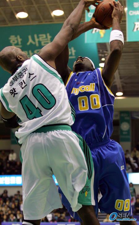 11일 원주 치악실내체육관에서 펼쳐진 2005~2006 KCC 프로농구 원주 동부 프로미와 서울 삼성 썬더스의 경기에서 동부 왓킨스가 골밑 슛을 시도하는 삼성 오예데지를 가로막고 있다. /원주=주지영 기자 jj0jj0@osen.co.kr [Copyright ⓒ 한국 최고의 스포츠 전문 미디어 OSEN(www.osen.co.kr) 무단전재 및 재배포 금지]