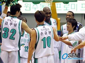 원주 동부가 5연승을 내달리던 선두 삼성을 제압하고 승차를 반경기로 줄였다. 동부는 11일 원주 치악체육관에서 열린 2005~2006 KCC 프로농구 정규리그 경기에서 자밀 왓킨스(21득점 10리바운드)와 손규완(20득점, 3점슛 4개)의 맹활약으로 삼성을 94-81로 완파했다. 이로써 동부는 지난 시즌 정규리그부터 삼성전 5연승을 기록하며 '삼성 킬러'의 면모를 다시 보여줬고 5연승을 내달리던 삼성의 상승세를 꺾었다. 또 동부는 이날 승리로 삼성을 반 경기차로 추격하며 선두 경쟁에 다시 불을 지폈다. 1쿼터를 18-19, 1점차로 뒤진 동부는 2쿼터부터 '약방의 감초'처럼 간간이 터지는 3점슛으로 역전을 시키며 앞서나가기 시작했다. 2쿼터 18초만에 양경민(19득점, 3점슛 2개, 6어시스트)의 3점슛으로 21-19로 뒤집은 동부는 21-21 동점이던 1분 16초에 24초 공격제한 시간 종료와 함께 터진 손규완의 3점슛으로 24-21로 벌렸다. 이어 김승기(6득점, 3점슛 2개)가 3점슛 2개를 추가하며 한때 9점차까지 앞서나간 끝에 1, 2쿼터 전반을 45-41, 4점차로 앞선 채 마쳤다. 3쿼터에 동부는 양경민과 김주성(18득점, 7리바운드, 4어시스트)이 각각 7득점씩 올려 68-59로 도망갔지만 마크 데이비스(9득점, 6리바운드)와 왓킨스가 파울 트러블에 걸리며 4쿼터 들어 삼성에게 추격을 허용했다. 4쿼터 4분 44초에 서장훈(22득점)에게 2점슛을 허용하며 76-71, 5점차까지 쫓기게 됐다. 이 때 손규완이 3점슛을 작렬하며 팀의 해결사 노릇을 해냈다. 경기종료 4분 39초전 이세범의 수비를 따돌리고 쏜 손규완의 3점슛이 림에 꽂힌데 이어 2분 40초전에는 왓킨스가 2점슛에 이은 보너스 자유투 성공으로 82-71로 도망가며 승기를 잡았다. 동부는 삼성의 잇따른 반칙 작전을 침착하게 자유투로 연결시키며 홈에서 귀중한 승리를 따냈다. ■ 11일 전적 ▲ 원주 원주 동부 94 (18-19 27-22 23-18 26-22) 81 서울 삼성 원주=박상현 기자 tankpark@osen.co.kr [Copyright ⓒ 한국 최고의 스포츠 전문 미디어 OSEN(www.osen.co.kr) 무단전재 및 재배포 금지]