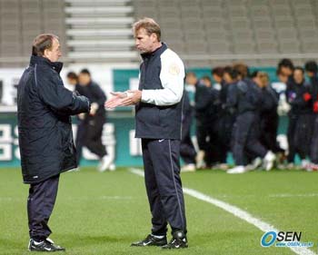'쿠키' 송종국(27.수원)이 발목 부상으로 대표팀에서 제외된 가운데 딕 아드보카트 감독은 추가 발탁 없이 해외 전지훈련을 시작할 것으로 보인다. 대표팀의 이원재 미디어 담당관은 "아드보카트 감독으로부터 송종국의 대체 선수에 관한 전갈을 받은 바 없다. 현재로서는 대체 선수 없이 전지훈련을 치를 것 같다"고 밝혔다. 이 미디어 담당관은 이어 "추가 발탁하는 것은 감독의 재량이지만 현 상황에서 대체 선수가 뽑히더라도 사우디아라비아의 비자가 해결되지 않아 당장 합류하는 것은 불가능하다"고 덧붙였다. 이에 따라 대표팀은 기존 24명 가운데 송종국을 제외한 23명을 오는 15일 인천국제공항에 소집해 아랍에미리트연합(UAE) 두바이로 출국하게 된다. 한편 송종국의 대체 선수가 합류하지 않을 경우 '총알' 조원희(23.수원)는 대표팀의 오른쪽 미드필더로 낙점받을 공산이 높은 것으로 점쳐지고 있다. 이번에 소집되는 미드필더들은 조원희를 비롯해 총 8명으로 김남일(이상 수원) 김정우 이호(이상 울산) 김동진 백지훈(이상 서울) 김두현 김상식 장학영(이상 성남) 등으로 이들 가운데 그동안 오른쪽 미드필더로 뛰었던 선수는 조원희가 유일하다. 아드보카트 감독은 앞선 세 차례 평가전에서 여러 포지션에 걸쳐 실험을 계속했지만 유독 오른쪽 미드필더만은 조원희를 고집했다. 이에 조원희는 이번 전훈에서 2002한일월드컵 4강의 주역인 송종국의 합류로 본격적인 주전 경쟁을 벌일 것으로 예상됐지만 '무혈 입성'할 가능성이 높아졌다. 24명 전훈 최종 명단에 앞서 발표한 32명의 예비 명단에는 오른쪽 미드필더로 뛰는 신예 오범석(22.포항)이 있지만 아드보카트 감독이 추후 호출할지 여부는 불투명하다. 오범석은 지난해 1월 본프레레호에 이름을 올려 콜롬비아전에서 성인 대표팀에 깜짝 데뷔한 선수로 8월 동아시아대회 일본전에서도 오른쪽 미드필더를 소화했다. 아드보카트호의 앞선 평가전에서 소집되지 않았던 오범석은 현재 포항의 전훈지인 스페인 라스팔로마스에서 시즌을 준비하고 있다. 하지만 대표팀 관계자는 현 인원 내에서 조원희의 경쟁자가 떠오를 가능성이 있다고 전했다. 그는 "아드보카트 감독이 김동진의 경우처럼 이번 전훈에서 여러 선수들의 멀티 능력을 점검해 볼 수도 있다"면서 송종국의 대체 선수를 내부에서 찾을 수도 있다고 밝혔다. 국영호 기자 iam905@osen.co.kr [Copyright ⓒ 한국 최고의 스포츠 전문 미디어 OSEN(www.osen.co.kr) 무단전재 및 재배포 금지]