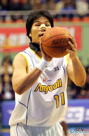 '국보센터' 서장훈이 국내 프로농구 사상 처음으로 8000득점을 돌파했고 소속팀 서울 삼성은 단독 선두를 고수했다. 서장훈은 14일 서울 잠실실내체육관에서 열린 전주 KCC와의 2005-2006 KCC 프로농구 32차전 홈경기에서 1쿼터 종료 11.9초를 남겨놓고 자유투를 성공(사진)시켜 통산 8000득점 고지에 올랐다. 지난 98년 11월14일 SK 소속으로 대구 동양전에서 24득점을 올리며 프로에 데뷔한 서장훈은 344경기, 7년 만에 대기록을 세웠다. 프로 통산 평균 득점은 23.31점. 이 경기 전까지 7995점을 넣었던 서장훈은 다소 긴장한 탓인 지 여러 차례 슈팅을 득점 기회를 놓쳤고 1쿼터 종료 3분57초를 남기고야 첫 득점에 성공했다. 서장훈은 이어 종료 1분을 남기고 2점슛을 성공시킨 뒤 11.9초 전에 골밑슛을 시도하는 찰라 KCC 최승태에게 파울을 얻어냈고 자유투 1구를 성공시켜 통산 8000점째 점수를 올렸다. 서장훈은 이날 전반에만 14득점을 올렸고 접전이 벌어지던 4쿼터 종료 막판 천금같은 4득점을 올려 통산 에 8013득점으로 경기를 마쳤다. 서장훈의 활약 속에 서울 삼성은 사상 최다관중(7405명)이 들어선 홈경기장에서 경기 막판 집중력을 발휘해 79-73으로 짜릿한 승리를 거뒀다. 3쿼터까지 KCC와 시소게임을 벌이며 59-57로 아슬아슬한 리드를 지킨 삼성은 4쿼터 시작과 함께 네이트 존슨과 올루미데 오예데지의 연속골로 6점차로 앞서 나가 손쉽게 승리를 챙기는 듯 했다. 하지만 삼성은 이어 종료 2분33초를 남기고 KCC 찰스 민렌드에 3점포를 얻어 맞아 69-69으로 동점을 허용, 암운이 드리우기도 했다. 단독 선두의 힘은 마지막에 발휘됐다. 삼성은 높이의 우위를 바탕으로 수비에 힘을 쏟아 상대 공격을 꽁꽁 묶었고 오예데지와 서장훈은 연달아 성공시켜 1분26초전 75-69, 다시 6점차로 달아나 승기를 잡았다. 삼성의 존슨(21득점.10리바운드)과 오예데지(19득점.10리바운드)는 '더블더블'로 맹활약했고 강혁(10득점.5어시스트)은 노련하게 경기를 운영해 힘을 보탰다. KCC는 이날 29득점(10리바운드)을 몰아넣은 민렌드가 경기 막판 슈팅이 난조를 보였고 조성원(4득점)의 외곽포도 침묵했다. 쉐런 라이트는 12득점, 11리바운드를 기록했고 추승균은 18점을 올렸다. 삼성은 21승11패를 기록해 단독 선두를 굳게 지켰고 2연승을 마감한 KCC는 5할 승률(16승16패)로 떨어졌다. 2위 원주 동부는 마크 데이비스(22득점.8리바운드) 자밀 왓킨스(15득점.11리바운드)의 맹활약 속에 창원 LG를 74-65로 물리쳐 2연승을 달렸다. 동부는 20승11패로 선두 삼성을 바짝 추격했다. 부산에서는 애런 맥기(22득점.11리바운드) 나이젤 딕슨(15득점.17리바운드) 조상현(19득점) 등 주전들이 고른 활약을 펼친 부산 KTF가 원정팀 서울 SK에 93-82로 승리했다. 인천 전자랜드는 공동 2위를 달리던 울산 모비스와 2차 연장까지 가는 접전 끝에 95-94로 따돌리고 9연패의 악몽에서 벗어났다. ◆14일 프로농구 전적 ▲서울 서울 삼성 79(23-20 17-17 19-20 20-16) 73전주 KCC ▲창원 창원 LG 65(16-19 17-14 22-25 10-16)74 원주 동부 ▲부산 부산 KTF 93(24-19 27-18 24-22 18-23)82 서울 SK ▲부천 인천 전자랜드 95(20-20 21-19 17-17 16-18 14-14 7-6)94 울산 모비스 국영호 기자 iam905@osen.co.kr [Copyright ⓒ 한국 최고의 스포츠 전문 미디어 OSEN(www.osen.co.kr) 무단전재 및 재배포 금지]