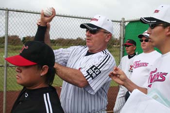 LG 하와이 캠프에 '마조니표 체인지업' 열풍이 불고 있다. LG 트윈스 미국 하와이 스프링캠프에서 인스트럭터로 초빙된 마조니 볼티모어 오리올스 투수코치가 LG투수들에게 체인지업을 중점적으로 전수하고 있다. 마조니 코치는 “이번 교육기간동안 70% 이상의 시간을 체인지업을 가르치는 데 쓸 것이다. 나머지 30%는 주자견제방법, 퀵모션, 번트-땅볼 수비등 기본적인 것들을 다룰 것이다”고 말했다. 마조니는 현장지도 첫날인 지난 13일 18명 투수들의 직구를 2인 1조로 점검하며 개개인의 특성을 파악한뒤 둘째날인 14일부터 체인지업에 대해 중점적으로 지도하고 있다. 그는 “투수는 기본적으로 직구와 체인지업만 있으면 어떤 타자든 상대할 수 있다. 다시 말해 직구와 구속차이가 많이 나며 밑으로 떨어지는 체인지업을 완벽하게 던진다면 무서운 투수가 될 수 있다”고 밝혔다. 또 그는 체인지업을 선택한 이유에 대해 “볼빠르기는 중요하지 않다. 그렉 매덕스, 톰 글래빈, 존 스몰츠의 직구 스피드는 모두 다르다. 하지만 그들의 공통점은 세 명 모두 같은 투구 동작에서 직구 스피드와 차이가 많이 나는, 아래로 떨어지는 체인지업을 자신감 있게 던질 수 있다는 것이다”고 말했다. 마조니 코치는 LG 투수 개인마다 '맞춤식 체인지업'을 전수하기 위해 최계훈 투수코치와 함께 땀을 흘리고 있다. 그는 투수들의 투구 비디오와 직구 투구를 지켜본 뒤 개인별로 잘 던질 수 있는 체인지업 그립을 일일이 지도하고 있는 것이다. 실제 마조니 코치는 14일부터 투수별로 1대1로 체인지업에 대해 ‘맞춤형 과외’를 실시하고 있다. 특히 마조니는 투수들의 피칭을 본 뒤에 반드시 최계훈 코치와 의견을 교환하며 투수별로 각기 다른 체인지업 그립과 투구동작을 상의해 지도하고 있다. 한편 마조니와의 친분으로 지난 12일부터 LG 스프링캠프를 참관하고 있는 허구연 MBC 해설위원은 “투수들이 가장 단기간에 배울 수 있는 변화구가 바로 체인지업이다. 마조니 코치가 부활시켰던 여러 투수들 역시 체인지업이 주무기였던 경우가 많았다. 마조니가 체인지업을 과목으로 선택한 것은 바로 그 이유인 것 같다”고 말했다. 마조니코치는 오는 17일까지 LG투수들을 지도할 계획이다. 박선양 기자 sun@osen.co.kr 마조니 코치가 진필중에게 체인지업 그립과 손목쓰는 법을 가르치고 있다. /LG 트윈스 제공 [Copyright ⓒ 한국 최고의 스포츠 전문 미디어 OSEN(www.osen.co.kr) 무단전재 및 재배포 금지]