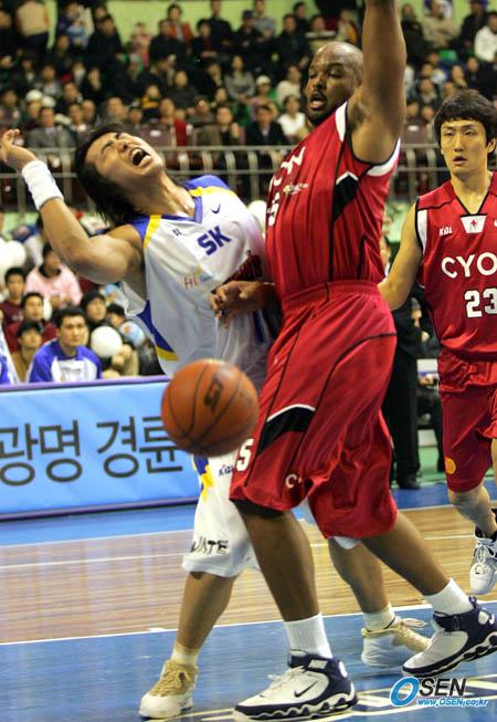 15일 잠실학생체육관에서 벌어진 2005~2006 KCC 프로농구 서울 SK와 창원 LG의 경기서 SK의 방성윤(왼쪽)이 슛을 시도하다 LG의 노먼 놀런과 부딪치며 공을 놓치고 넘어지고 있다./잠실학생체=주지영 기자 jj0jj0@osen.co.kr [Copyright ⓒ 한국 최고의 스포츠 전문 미디어 OSEN(www.osen.co.kr) 무단전재 및 재배포 금지]