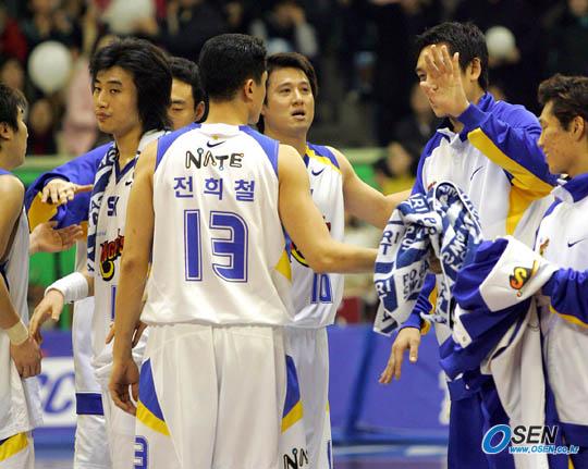 15일 잠실학생체육관에서 벌어진 2005~2006 KCC 프로농구 서울 SK와 창원 LG의 경기서 85-77로 역전승을 거둔 SK 선수들이 기뻐하며 손을 마주치고 있다./잠실학생체=주지영 기자 jj0jj0@osen.co.kr [Copyright ⓒ 한국 최고의 스포츠 전문 미디어 OSEN(www.osen.co.kr) 무단전재 및 재배포 금지]