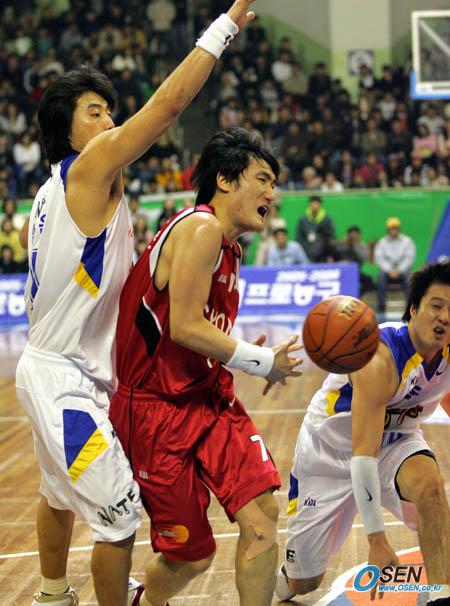 15일 잠실학생체육관에서 벌어진 2005~2006 KCC 프로농구 서울 SK와 창원 LG의 경기서 LG의 조우현이 골밑을 돌파하 SK 방성윤(왼쪽)과 문경은의 샌드위치 마크에 걸리며 볼을 놓치고 있다./잠실학생체=주지영 기자 jj0jj0@osen.co.kr [Copyright ⓒ 한국 최고의 스포츠 전문 미디어 OSEN(www.osen.co.kr) 무단전재 및 재배포 금지]