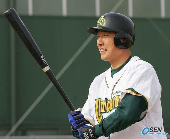 현대 유니콘스가 17일 고양의 원당구장에서 포토데이 행사를 가졌다. 지난 16일 두산과 FA 계약 후 현대로 트레이드된 홍원기가 절친한 친구인 박찬호(샌디에이고 파드리스)가 줬다는 방망이를 들고 사진기자들을 위해 포즈를 취하고 있다. /고양=손용호 기자 spjj@osen.co.kr [Copyright ⓒ 한국 최고의 스포츠 전문 미디어 OSEN(www.osen.co.kr) 무단전재 및 재배포 금지]