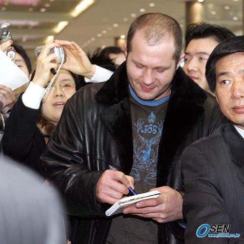 세계 종합격투기의 황제인 '얼음 주먹' 표도르 에밀리아넨코가 18일 오전 러시아 고유 호신술인 삼보 홍보를 위해 인천공항을 통해 입국했다. 표도르가 팬들에게 친절하게 사인해 주고 있다./인천공항=손용호 기자 spjj@osen.co.kr [Copyright ⓒ 한국 최고의 스포츠 전문 미디어 OSEN(www.osen.co.kr) 무단전재 및 재배포 금지]