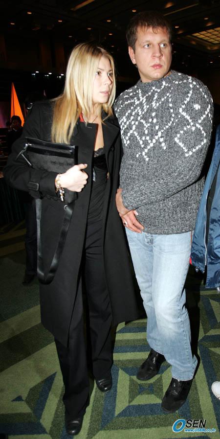 종합격투기 세계 최강 표도르 에밀리아넨코가 러시아 호신술인 삼보 홍보를 위해 동생 알렉산더와 함께 18일 오전 내한, 저녁에는 서울 홍은동 그랜드 힐튼 호텔에서 열린 GM대우 자동차 TOSCA 신차발표회장을 찾았다. 신혼인 알렉산더 부부가 두 손을 꼭잡고 주변을 살펴보고 있다./주지영 기자 jj0jj0@osen.co.kr [Copyright ⓒ 한국 최고의 스포츠 전문 미디어 OSEN(www.osen.co.kr) 무단전재 및 재배포 금지]