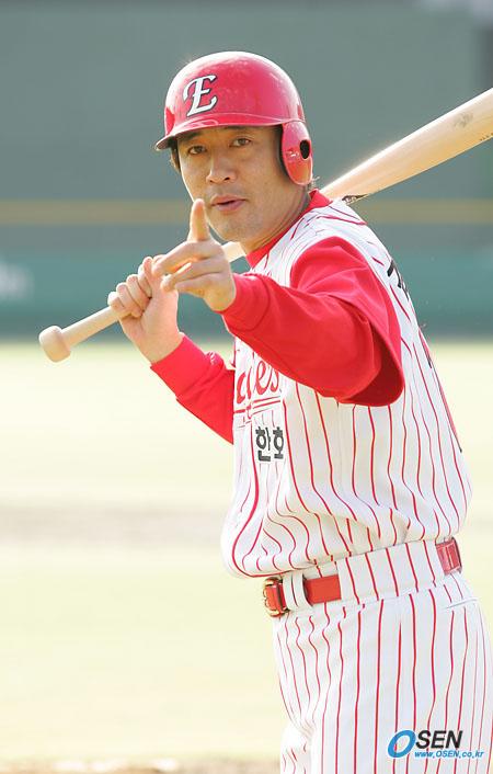 모자의 로고를 바꾼 한화 이글스가 19일 대전 한밭운동장에서 포토데이 행사를 가졌다. SK에서 프리에이전트를 선언하고 한화로 이적한 김민재가 사진기자들에게 한 번에 촬영을 끝낼 수 있도록 하자고 제의하고 하고 있다./대전=박영태 기자 ds3fan@osen.co.kr [Copyright ⓒ 한국 최고의 스포츠 전문 미디어 OSEN(www.osen.co.kr) 무단전재 및 재배포 금지]