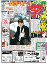 요미우리 자이언츠에 입단한 이승엽(30)이 전국구 스타로 뜰 수 있는 든든한 후원자를 얻었다. 바로 요미우리와 같은 계열사인 다. 입단식을 치른 다음 날인 20일 이승엽은 의 1면 톱(사진)을 장식했다. 이 신문은 ‘이승엽 요미우리로 결정, 하라 감독-최고, 1루 서바이벌’이라는 제목으로 이승엽의 입단관련 기사를 실었다. 이승엽이 도쿄 돔을 배경으로 요미우리 모자를 쓰고 오른손으로 ‘가위’를 낸 모습을 하고 있는 사진과 함께 부인 이송정 씨와 나란히 서 있는 장면, 하라 감독과 악수하고 있는 장면 등 3장의 사진을 실었다. 같은 날 다른 신문들이 주가조작 사건으로 하루 아침에 나락으로 굴러 떨어질 위기에 처해 있는 라이브 도어 호리에 사장 스캔들을 1면으로 다루고 있는 것과 대조되는 보도다. 한 마디로 이승엽이 세계최고의 발행부수(1000만 부)를 자랑하는 신문이 이끄는 일본미디어 왕국의 일원이 됐음을 실감케 하고 있다. 는 앞서 이승엽이 자유계약선수로 공시된 다음 날인 14일자에도 1면 톱기사로 ‘이승엽 요미우리 열망’이라고 보도했다. 이승엽은 일본에 진출한 첫 해인 2004년 4월 4일 다이에(현 소프트뱅크)와 홈경기에서 마린스타디움 장외로 날아가는 150m짜리 대형 홈런에 이어 다음 날 홈런을 또 날렸을 때 스포츠신문들의 1면을 장식한 적이 있다. 하지만 이후 1면 톱기사로 오르는 경우가 거의 없었다. 하지만 요미우리로 이적하게 되면서 벌써 일주일 사이에 비록 하나뿐이긴 하지만 두 번이나 1면 톱기사로 다뤄졌다. 는 요미우리와 같은 계열사인 만큼 모든 보도의 중심을 요미우리에 둘 수밖에 없다. 오히려 요미우리의 인기에 편승해 신문을 판매하고 있다고 보는 것이 정확한 표현인지도 모른다. 이 때문에 소속으로 요미우리를 취재하는 기자수도 다른 스포츠신문들에 비해 2~3배 많고 아예 선수를 몇 명씩나눠 맡아 취재하고 있다. 비슷한 예는 선동렬 삼성 감독이 주니치 드래건스에서 뛰던 시절에도 있었다. 같은 계열사인 가 선 감독의 당시 활약상을 심심치 않게 1면 톱기사로 보도했다. 하지만 와 는 영향력 면에서 차이가 난다. 는 한때 일본의 스포츠전문지들 중 발행부수 1위를 자랑했다. 현재는 에 조금 뒤지는 것으로 평가되고 있지만 전국적인 영향력을 갖고 있는 것만큼은 분명하다. 이에 비해 는 나고야를 중심으로 한 간사이 지방에서 영향력이 큰 신문으로 봐야 한다. 시즌이 시작되면 이승엽은 본격적으로 공중파의 ‘지원’도 받게 된다. 요미우리와 같은 계열사인 니혼TV가 요미우리의 전경기를 공중파를 통해 생중계하는 만큼 일본 전역의 안방에 자신을 알릴 수 있게 된다. 박승현 nanga@osen.co.kr [Copyright ⓒ 한국 최고의 스포츠 전문 미디어 OSEN(www.osen.co.kr) 무단전재 및 재배포 금지]