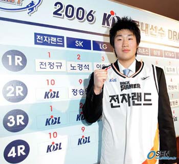 "서울 SK에서 뛰고 있는 (조)상현이 형을 닮고 싶어요". 서울 양재동 서울교육문화회관에서 20일 열린 2006 KBL 국내선수 드래프트에서 전체 1순위로 인천 전자랜드의 부름을 받은 전정규가 조상현을 모델로 팀에 보탬이 되는 선수가 되겠다는 각오를 밝혔다. 오는 2월 연세대 졸업예정으로 팀의 주장을 맡고 있는 슈팅 가드인 전정규는 이미 자타가 공인하는 3점 슈터. 스피드가 느리고 1대1 돌파력이 약간 떨어진다는 평가를 받고 있긴 하지만 경기마다 기복이 없는 슈팅 감각을 보여줘 일찌감치 전체 1순위 후보로 예견됐던 선수다. 이를 의식한 듯 전정규는 "대학 농구와 프로의 차이점은 무엇보다도 스피드와 힘"이라며 "일단 웨이트를 통해 파워를 기르고 다음 시즌까지 스피드도 최대한 보강하겠다"고 말했다. 또 전정규는 "주전을 꿰찬 다음 기복이 없는 플레이로 팀에 보탬이 되는 선수가 되고 싶다"며 "신인으로서 당연히 신인상을 목표로 하겠다"고 말했다. 이어 "너무 긴장되어서 전날 잠을 제대로 자지 못했다"고 쑥스럽게 웃은 전정규는 "트라이 아웃에서 슛이 제대로 들어가지 않아 걱정했는데 전체 1순위로 내가 원하던 팀에 들어가게 되어 기쁘다"고 덧붙였다. 한편 2순위로 김태환 서울 SK 감독의 부름을 받은 노경석과 3순위로 창원 LG의 지명을 받은 이현민은 "1라운드 중간쯤 뽑히면 빨리 지명되는 것이라고 생각했는데 2, 3순위로 뽑혀서 깜짝 놀랐다"는 소감을 밝혔다. 김태환 감독은 "노경석은 유니버시아드, 동아시아대회, 존스컵 등 국제대회에 참가한 경력이 풍부하고 스피드도 빨라 수비도 일품"이라며 "내년부터 슈팅 가드로 뛰게 된다면 SK는 방성윤 등과 더불어 훌륭한 외곽 공격능력을 보유하게 될 것"이라고 밝혔다. 또 가드가 취약하다는 평을 받고 있는 LG의 부름을 받은 이현민은 "(황)성인이 형이 내년 자유계약선수(FA)가 된다고 알고 있는데 다른 팀에 가게 된다면 주전가드로서 팀에 많은 보탬이 되고 싶고 계속 남아있는다면 백업가드로 제 역할을 하겠다"는 포부를 밝혔다. 글, 박상현 기자 tankpark@osen.co.kr 사진, 주지영 기자 jj0jj0@osen.co.kr [Copyright ⓒ 한국 최고의 스포츠 전문 미디어 OSEN(www.osen.co.kr) 무단전재 및 재배포 금지]