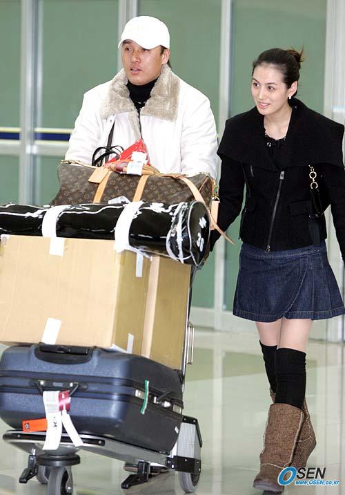 요미우리 자이언츠와 입단식을 마친 이승엽이 20일 김포공항을 통해 입국했다. 이승엽은 19일 하라 감독이 참석한 가운데 입단식을 가졌고 20일 메디컬 체크를 마친후 부인 이송정씨와 OZ 1035편으로 귀국했다. 이승엽이 부인 이송정씨와 입국장을 나서고 있다./김포공항=손용호기자spjj@osen.co.kr [Copyright ⓒ 한국 최고의 스포츠 전문 미디어 OSEN(www.osen.co.kr) 무단전재 및 재배포 금지]