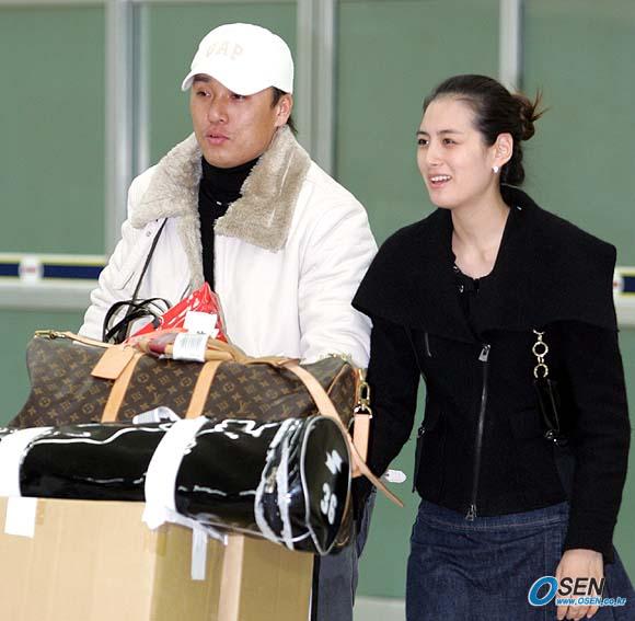 요미우리 자이언츠와 입단식을 마친 이승엽이 20일 김포공항을 통해 입국했다. 이승엽은 19일 하라 감독이 참석한 가운데 입단식을 가졌고 20일 메디컬 체크를 마친후 부인 이송정씨와 OZ 1035편으로 귀국했다. 이승엽이 부인 이송정과 입국장을 나서고 있다./김포공항=손용호기자spjj@osen.co.kr [Copyright ⓒ 한국 최고의 스포츠 전문 미디어 OSEN(www.osen.co.kr) 무단전재 및 재배포 금지]