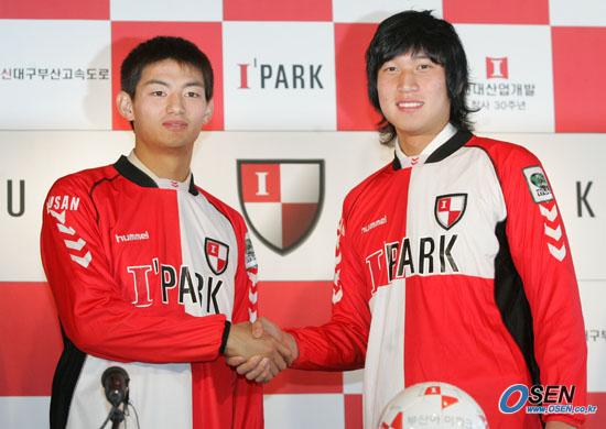 일본 나고야 그램퍼스 에이트에서 활약하던 북한대표 출신 안영학이 22일 오전 서울 대치동 파크 하얏트호텔에서 도쿄 베르디 출신 이강진과 함께 부산 아이파크 입단식을 가졌다. 안영학(왼쪽)과 이강진이 악수를 나누고 있다./박영태 기자 ds3fan@osen.co.kr [Copyright ⓒ 한국 최고의 스포츠 전문 미디어 OSEN(www.osen.co.kr) 무단전재 및 재배포 금지]