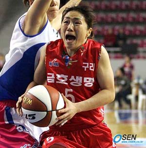 구리 금호생명이 4연승으로 선두를 달리고 있는 '대어' 안산 신한은행을 잡았다. 금호생명은 23일 구리실내체육관에서 열린 2006 금호 아시아나배 여자 프로농구 겨울리그 정규리그 홈경기에서 특급 포인트가드 김지윤(25득점, 3점슛 2개, 8어시스트)와 이종애(14득점), 케이티 크리센(11득점, 11리바운드, 3스틸)의 활약을 앞세워 신한은행을 69-64로 제압했다. 이로써 금호생명은 5승 7패가 되며 광주 신세계를 반경기차로 따돌리고 단독 4위가 됐고 신한은행은 9승 3패로 7승 4패의 춘천 우리은행에 1.5경기차로 쫓기게 됐다. 금호생명은 10전 1승 9패의 절대적인 열세에 놓여있던 신한은행을 맞아 철벽수비로 맞섰다. 특히 금호생명은 신한은행의 주포 맥윌리암스가 공을 잡을 때마다 더블 팀 수비로 괴롭혔고 그 결과 맥윌리암스는 턴오버 3개를 범하며 자멸했다. 특히 크리센은 스틸 3개를 기록하며 맥윌리암스를 철벽마크했다. 신한은행의 맥윌리암스를 집중 수비한 결과 금호생명은 경기 종료 막판까지도 역전과 재역전, 동점을 이루며 팽팽하게 맞섰고 결국 승부는 막판에 갈렸다. 56-58로 뒤져있던 경기종료 4분 12초전에 이종애의 2점슛으로 58-58 동점을 만든 금호생명은 종료 3분 39초전 다시 이종애가 2점슛을 성공시켜 60-58로 역전시킨 뒤 2분 18초전 정미란(3득점)의 3점슛으로 순식간에 63-58로 달아났다. 잦은 실수로 짜증이 나 있던 맥윌리암스가 종료 1분 27초전 작전 시간이 남아있지 않은 것을 모르고 타임을 부르다 테크니컬 파울을 하는 실수를 한 덕분에 김지윤이 자유투를 성공시켜 64-58로 점수를 벌린 금호생명은 진미정에게 3점슛을 얻어맞긴 했지만 이후 김지윤이 다시 자유투 2개를 성공시키며 66-61로 달아나 승부를 갈랐다. ■ 23일 전적 ▲ 구리 구리 금호생명 69 (19-16 18-21 8-11 24-16) 64 안산 신한은행 박상현 기자 tankpark@osen.co.kr 김지윤 [Copyright ⓒ 한국 최고의 스포츠 전문 미디어 OSEN(www.osen.co.kr) 무단전재 및 재배포 금지]
