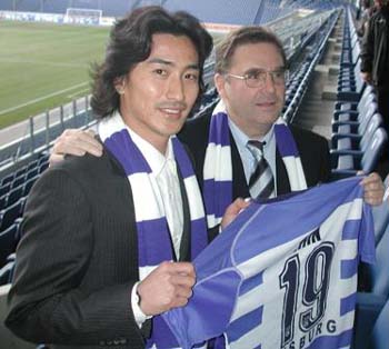 안정환(30)의 새로운 팀이 된 독일 MSV 뒤스부르크가 안정환의 영입을 공식 발표했다. 뒤스부르크 구단은 24일(이하 한국시간) 공식 구단 홈페이지(www.msv-duisburg.de)를 통해 프랑스 FC 메스에서 뛰던 안정환을 영입, 이번 겨울 이적시장에서 세번째 선수를 데려오게 됐다면서 발터 헬미치 구단주와 함께 찍은 입단 기념 사진과 함께 안정환에 대해 비교적 자세하게 소개했다. 뒤스부르크가 독일 분데스리가 1부리그에 남아있는 조건으로 2007년까지 계약했다고 밝힌 뒤스부르크 구단은 지난 2002년 한일 월드컵 16강전에서 눈부신 골든골을 넣으며 한국의 영웅이 됐지만 정작 이때문에 이탈리아 페루자에서 퇴출됐으며 일본 프로축구 J리그에서 3년동안 지낸 뒤 프랑스 FC 메스에서 16경기에 나와 2골을 넣었다고 밝혔다. 이로써 뒤스부르크로의 이적이 완료된 안정환은 오는 28일 후기리그 개막전인 VfB 슈투트가르트와의 원정경기를 통해 독일 데뷔전을 치를 전망이다. 특히 슈투트가르트의 감독이 지난 2002년 한일 월드컵 당시 이탈리아 대표팀의 지휘봉을 잡았던 지오바니 트라파토니 감독이어서 '운명의 장난' 또는 '악연'을 실감케 하고 있다. 현재 슈투트가르트는 17경기를 치르는 동안 5승 10무 2패, 승점 25점을 기록하며 5위 헤르타 베를린에 이어 6위를 달리고 있어 17위 뒤스부르크로서는 다소 버거운 상대가 될 전망이다. 뒤스부르크는 지난해 8월 7일 슈투트가르트와 시즌 첫 경기를 치러 1-1로 비긴바 있다. ■ 뒤스부르크 정규리그 후기리그 일정 1월 28일 - VfB 슈투트가르트 (원정) 2월 4일 - 1. FC 카이저슬라우테른 (홈) 2월 8일 - 보루시아 도르트문트 (원정) 2월 11일 - 뮌헨글라드바흐 (홈) 2월 18일 - 바이엘 레버쿠젠 (원정) 2월 27일 - 헤르타 베를린 (홈) 3월 4일 - 1. FC 뉘른베르크 (원정) 3월 11일 - 하노버 96 (홈) 3월 18일 - 아인트라흐트 프랑크푸르트 (원정) 3월 25일 - 바이에른 뮌헨 (홈) 4월 1일 - VfL 볼프스부르크 (원정) 4월 8일 - 샬케 04 (홈) 4월 15일 - 함부르크 SV (홈) 4월 22일 - 1. FC 쾰른 (원정) 5월 4일 - 베르더 브레멘 (홈) 5월 6일 - 아르미니아 빌레펠트 (원정) 5월 13일 - FSV 마인츠 05 (홈) 박상현 기자 tankpark@osen.co.kr 뒤스부르크 홈페이지 [Copyright ⓒ 한국 최고의 스포츠 전문 미디어 OSEN(www.osen.co.kr) 무단전재 및 재배포 금지]