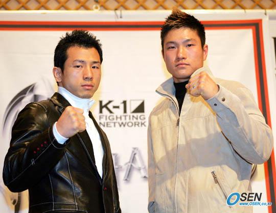 오는 2월 25일 부산에서 벌어지는 K-1 FIGHTING NETWORK KHAN 2006 개최 기자회견이 26일 오후 서울 신라호텔에서 열렸다. 임치빈(왼쪽)과 최재식이 포즈를 취하고 있다. /주지영 기자 jj0jj0@osen.co.kr [Copyright ⓒ 한국 최고의 스포츠 전문 미디어 OSEN(www.osen.co.kr) 무단전재 및 재배포 금지]