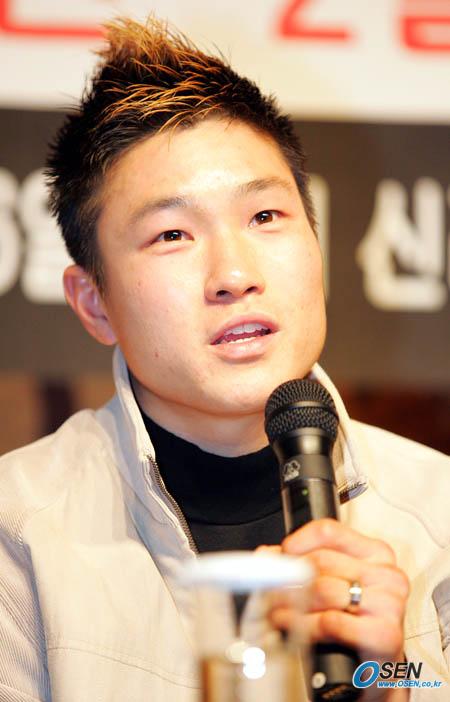 오는 2월 25일 부산 벡스코서 벌어지는 K-1 FIGHTING NETWORK KHAN 2006 대회 개최 기자회견이 26일 오후 서울 신라호텔에서 열렸다. '외팔이 파이터' 최재식이 질문에 대답하고 있다./주지영 기자 jj0jj0@osen.co.kr [Copyright ⓒ 한국 최고의 스포츠 전문 미디어 OSEN(www.osen.co.kr) 무단전재 및 재배포 금지]