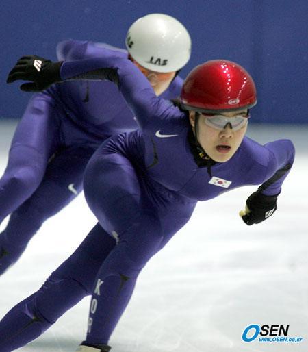 오는 2월 11일 막이 오르는 2006 토리노 동계올림픽서 '한국의 메달밭'이 될 쇼트트랙에 출전할 남녀 대표팀이 태릉선수촌 빙상장에서 막바지 훈련에 박차를 가하고 있다. 지난 26일 훈련서 여자 대표팀의 간판 최은경(앞)이 힘차게 빙판을 질주하고 있다./태릉선수촌=박영태 기자 ds3fan@osen.co.kr [Copyright ⓒ 한국 최고의 스포츠 전문 미디어 OSEN(www.osen.co.kr) 무단전재 및 재배포 금지]