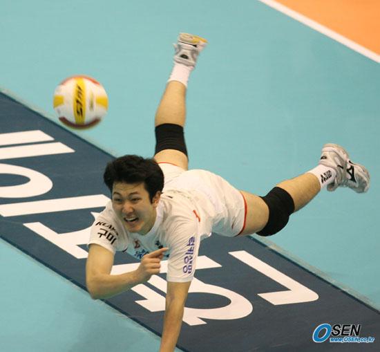 28일 서울 올림픽공원 펜싱경기장에서 열린 KT&G 2005-2006 V-리그 삼성화재와 LG화재의 경기에서 LG화재의 리베로 곽동혁이 터치아웃되는 볼을 몸을 날려 살려내고 있다./올림픽공원=박영태 기자 ds3fan@osen.co.kr [Copyright ⓒ 한국 최고의 스포츠 전문 미디어 OSEN(www.osen.co.kr) 무단전재 및 재배포 금지]
