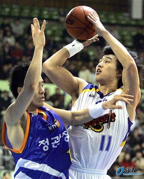 설 연휴인 28일 서울 잠실학생체육관에서 벌어진 2005~2006 KCC 프로농구 서울 SK와 안양 KT&G의 경기서 1쿼터 20여 점 차로 뒤지던 SK가 데이먼 브라운과 방성윤의 활약으로 104-100의 짜릿한 역전승을 거두었다. 2쿼터서 SK의 방성윤이 KT&G 김성철의 밀착 마크에 몸을 틀며 슛을 던지고 있다./잠실학생체=손용호 기자spjj@osen.co.kr [Copyright ⓒ 한국 최고의 스포츠 전문 미디어 OSEN(www.osen.co.kr) 무단전재 및 재배포 금지]