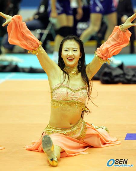 30일 서울 올림픽공원 펜싱경기장에서 벌어진 KT&G 2005-2006 V-리그 천안 현대캐피탈 스카이워커스와 대전 삼성화재 블루팡스의 경기서 치어리더가 매혹적인 의상으로 퍼포먼스를 선보이고 있다./올림픽공원=주지영 기자 jj0jj0@osen.co.kr [Copyright ⓒ 한국 최고의 스포츠 전문 미디어 OSEN(www.osen.co.kr) 무단전재 및 재배포 금지]