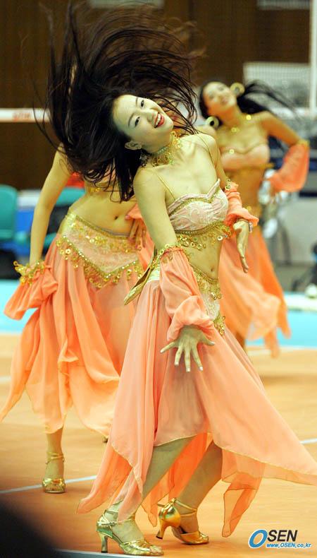 30일 서울 올림픽공원 펜싱경기장에서 벌어진 KT&G 2005-2006 V-리그 천안 현대캐피탈 스카이워커스와 대전 삼성화재 블루팡스의 경기서 치어리더가 긴 머리를 휘날리며 섹시 댄스를 추고 있다./올림픽공원=주지영 기자 jj0jj0@osen.co.kr [Copyright ⓒ 한국 최고의 스포츠 전문 미디어 OSEN(www.osen.co.kr) 무단전재 및 재배포 금지]