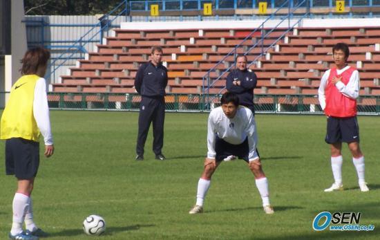 국가대표팀이 미국으로 이동하기 직전인 2일 오전 홍콩 몽콕 스타디움에서 회복 훈련을 가졌다. 전날 덴마크전에서 길지 않은 시간을 뛴 이동국 등은 핌 베어벡 코치와 딕 아드보카트 감독이 지켜보고 있는 가운데 간단한 부분 전술 훈련을 실시했다. /홍콩=박상현 기자 tankpark@osen.co.kr [Copyright ⓒ 한국 최고의 스포츠 전문 미디어 OSEN(www.osen.co.kr) 무단전재 및 재배포 금지]
