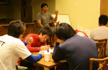 기아 타이거즈의 플로리다 캠프에서 함께 훈련하고 있는 서재응(29.LA 다저스)이 기아 투수들을 상대로 특강을 실시했다. 월드베이스볼클래식(WBC)에 대비, 플로리다주 포트 샬럿의 기아 캠프에 합류해 몸을 만들고 있는 서재응은 지난 2일(한국시간) '메이저리거 투수들의 몸 관리와 정신 자세'라는 주제로 기아 투수 21명을 대상으로 특강을 펼쳤다. 야간훈련을 대신해 열린 특강은 서정환 감독의 요청으로 이뤄졌다. "선수들의 몸 관리가 가장 중요하다"고 말문을 연 서재응은 "우리나라 야구의 경우 팀 훈련 시간은 메이저리그보다 훨씬 많다. 하지만 개인 훈련량은 상상할 수 없을 정도로 적다. 자신의 몸에 많은 투자를 하지 않으면 훌륭한 투수가 될 수 없다"고 강조했다. 서재응은 "스프링캠프에 오기 전에 이미 몸을 80% 이상 만들어 놔야 한다. 충분히 몸을 만들지 못한 상태에서 캠프에 합류할 경우 부상의 위험이 있다"며 "메이저리거들은 캠프에 합류하는 즉시 게임을 할 수 있을 정도"라고 소개했다. 서재응은 또 "자신의 몸상태에 대해 대충 '괜찮다'는 식으로 넘어가지 말고 문제가 있다면 확실하게 몸 상태를 (코칭스태프에게) 설명해야 한다"며 "자신이 세운 목표는 아무리 힘들고 어려울지라도 자신과 타협하지 말고 기필코 완수해야 한다. 이를 위해 충분한 몸 상태를 만들어 놓은 것은 필수"라고 강조했다. 훈련 분위기에 대해서는 "메이저리그는 선수들이 항상 밝은 마음으로 훈련을 한다"며 "즐거운 마음으로 훈련에 임할 것"을 당부했다. 운동장에서 밝은 표정과 즐거운 마음은 훈련을 즐겁게 하고 따라서 훈련습득도 훨씬 빠르다는 것. 특히 "말 한마디라도 동료 선수들의 기분을 상하지 않도록 하는 것이 필요하다"고 강조했다. 이밖에 서재응은 "감독과 코치의 지적 사항에 대해서는 긍정적 사고로 받아들이고 활용을 잘 해야 할 것" "메이저리거들의 경우 코칭스태프를 존경하지 어렵게 생각하지는 않는다. 필요하면 언제든지 코치들과 상의하는 자세가 필요하다" "자신의 볼에 자신감을 가져야 한다. 초구는 무조건 스트라이크를 잡아라" 등 후배 투수들에게 도움이 될 만한 말들을 쏟아냈다. 1시간 가량 강의를 마친 뒤 질의응답 시간에 기아 투수들은 선발 출장후 다음 출장할 때까지 메이저리거들은 어떻게 훈련을 하는지와 불펜 투수들의 훈련 스타일 등에 대해 질문을 했다. 특히 서재응과 함께 WBC에 출전할 전병두는 서재응의 말 한 마디를 놓칠 새라 모두 메모하며 듣는 열성을 보였다. 서재응이 기아 투수들을 상대로 특강하고 있다. 앞줄의 전병두가 이를 꼼꼼히 받아적고 있다. /기아 타이거즈 제공 이종민 기자 mini@osen.co.kr [Copyright ⓒ 한국 최고의 스포츠 전문 미디어 OSEN(www.osen.co.kr) 무단전재 및 재배포 금지]