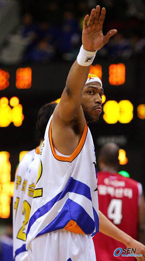 '두번 실수는 없다'. 안양 KT&G가 창원 LG를 안방으로 불러들여 내외곽의 고른 전력을 뽐내며 4일 전에 당한 패배를 앙갚음했다. 화끈한 공격 농구 속에 2연승이 함께 따라왔다. KT&G가 5일 안양실내체육관에서 열린 2005-2006 KCC 프로농구 창원 LG와의 경기에서 주전 선수들의 고른 활약에 힘입어 단 한차례도 동점이나 역전을 허용하지 않고 93-84로 완승을 거뒀다. 이로써 KT&G는 16승21패를 기록하며 여전히 9위를 유지했지만 2연승의 가파른 상승세를 달려 중위권 진입을 노려볼 수 있게 됐다. 연승 행진을 '2'에서 마감한 LG는 18승19패로 5할 승률 아래로 떨어졌다. 지난 1일 적지에서 3쿼터까지 11점차로 앞서다 4쿼터에 역전패했던 KT&G는 같은 실수를 되풀이하지 않겠다는 듯 초반부터 거세게 밀어부쳤다. KT&G는 단테 존스(29점.11리바운드)와 안토니오 키칭스(18점.9리바운드)가 골밑에서 상대를 앞도하고 주희정(11점)이 외곽포를 잇따라 성공시켜 1쿼터를 29-23으로 앞섰다. 이어 KT&G는 2쿼터 들어 LG의 김훈(17점), 조우현(5점)에 잇따라 3점포를 얻어맞고 종료 5분10초전 37-36으로 1점차로 쫓겨 암운을 드리우기도 했지만 이후 존스, 키칭스, 윤영필(8점)이 잇따라 골밑슛을 터뜨리고 은희석(7점)이 3점포를 꽂아 전반을 54-40으로 크게 앞섰다. 한번 불붙은 득점포는 3쿼터 들어 더욱 거세게 타올라 사실상 승부를 갈랐다. KT&G는 존스가 내외곽을 넘나들면서 득점포를 쏘아올리고 '힘좋은' 키칭스가 골밑을 장악, 양희승(11점)이 득점포를 더한데 힘입어 3쿼터 종료 1분28초전 점수차를 25점까지 벌려 승기를 잡았다. 이날 승리한 KT&G는 올시즌 LG를 상대로 2승3패를 기록하게 됐다. 양희승은 정규경기 통산 5000점(역대 12호)에 7점 만을 남겨두게 됐다. LG는 센터 드미트리우스 알렉산더가 33점으로 분전했지만 노먼 놀런(4점.7리바운드)이 부진, KT&G의 키칭스의 힘을 당해내지 못했다. 여기에 3쿼터 초반 조우현과 알렉산더가 잇따라 공격자 파울로 저질러 대량 실점의 빌미를 제공했다. LG는 4쿼터 중반 이후부터 느슨해진 KT&G를 상대로 무서운 집중력을 발휘, 종료 1분26초전 황성인(19점)의 3점슛으로 92-84, 8점차까지 추격하는 데 성공했지만 시간이 모자랐다. ■5일 프로농구 전적 ▲안양 안양 KT&G 93(29-23 25-17 25-20 14-24)84 창원 LG 안양=국영호 기자 iam905@osen.co.kr 경기 후 관중석을 향해 손을 흔드는 단테 존스./안양=주지영 기자 jj0jj0@osen.co.kr [Copyright ⓒ 한국 최고의 스포츠 전문 미디어 OSEN(www.osen.co.kr) 무단전재 및 재배포 금지]