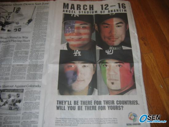 LA 다저스 최희섭(27)이 WBC(월드 베이스볼 클래식) 한국 대표팀의 '얼굴'로 선정됐다. 최희섭은 LA 타임스 등 미 유력 신문에 게재된 WBC 광고에서 미국의 데릭 지터(뉴욕 양키스), 일본의 스즈키 이치로(시애틀), 멕시코의 비니 카스티야와 함께 메인 모델로 등장했다(사진). 최희섭은 자기 나라의 국기를 얼굴에 새긴 다른 빅리거들과 마찬가지로 태극 문양을 그리고 한국을 대표했다. 이어 광고는 '이들 선수들은 자신의 나라를 대표하기 위해 WBC에 출전할 것이다. 여러분은 여러분의 나라를 위해 그곳에 있을 것인가?'라는 문구를 달아 WBC에 대한 관심을 호소했다. 또 광고는 'WBC에 데릭 지터, 이치로, 최희섭, 카스티야, 로저 클레멘스, 배리 본즈 등 많은 선수들이 조국에 대한 자부심을 가지고 뛴다. 미국에서는 나흘에 걸쳐 6경기(8강전 준결승전 결승전)가 펼쳐진다. 와서 야구의 역사를 목격하라!'고 선전했다. 로스앤젤레스=김영준 특파원 sgoi@osen.co.kr [Copyright ⓒ 한국 최고의 스포츠 전문 미디어 OSEN(www.osen.co.kr) 무단전재 및 재배포 금지]