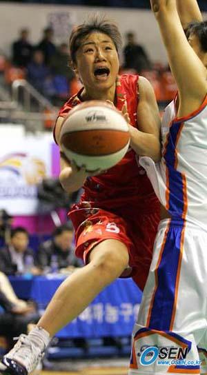 구리 금호생명이 천안 국민은행을 제압하면서 4강 플레이오프 진출을 향한 3개팀의 치열한 경쟁이 더욱 뜨거워졌다. 금호생명은 6일 천안 유관순 체육관에서 열린 2006 금호 아시아나배 여자 프로농구 겨울리그 정규리그 원정경기에서 각각 3점슛을 4개씩 터뜨린 가드 김지윤(24득점, 6리바운드, 5어시스트)과 포워드 정미란(16득점)의 맹활약에 힘입어 용병 티냐 톰슨(23득점, 3점슛 2개, 11리바운드)과 정선민(20득점, 10리바운드)이 분전한 국민은행을 73-63으로 완파했다. 이로써 금호생명과 국민은행을 비롯해 전날 안산 신한은행에 값진 승리를 거둔 용인 삼성생명이 모두 7승 9패가 되며 2장밖에 남지 않은 포스트시즌 티켓을 놓고 세 팀이 각축을 벌이는 양상이 됐다. 현재 선두를 달리고 있는 춘천 우리은행과 신한은행은 순위만 결정되지 않았을 뿐 플레이오프 진출은 이미 확정지었고 4승 11패로 최하위를 달리고 있는 광주 신세계는 전승을 거두지 않는 한 포스트 시즌 진출은 어려운 상태다. 특히 금호생명은 올시즌 정규리그 국민은행과의 전적에서 3승 1패로 앞서 승패가 같을 경우 순위에서 앞설 수 있는 유리한 고지도 점령했다. 금호생명은 1라운드 첫 경기에서는 59-63으로 졌지만 2라운드와 3라운드는 각각 81-75, 74-54로 승리했다. 1, 2쿼터 전반까지 38-31, 금호생명의 7점차 리드로 끝난 가운데 승부는 3쿼터 초반부터 갈렸다. 이경희(9득점)에게 2점슛을 내줘 38-33으로 쫓기던 중 3쿼터 1분 23초에 나온 김경희(10득점)의 2점슛과 정미란의 3점슛으로 점수차를 10점차로 벌린 금호생명은 43-34, 9점차로 앞서있던 3분 14초부터 김경희, 홍정애(2득점)의 2점슛과 김지윤의 3점슛으로 단숨에 50-34, 16점차로 달아나 승기를 잡았다. 3쿼터를 58-45로 마친 금호생명은 경기종료 5분을 남겨놓고 63-55, 8점차까지 쫓겼지만 66-57이던 종료 3분 56초전부터 김지윤이 연속 5득점을 성공시키며 71-57로 다시 달아나 승부를 결정지었다. ■ 6일 전적 ▲ 천안 천안 국민은행 63 (16-18 15-20 14-20 18-15) 73 구리 금호생명 ■ 중간 순위 (6일 현재) ① 춘천 우리은행 11승 4패 (0.733) - ② 안산 신한은행 11승 5패 (0.688) 0.5 ③ 구리 금호생명 7승 9패 (0.438) 4.0 ③ 용인 삼성생명 7승 9패 (0.438) 4.0 ③ 천안 국민생명 7승 9패 (0.438) 4.0 ⑥ 광주 신세계 4승 11패 (0.267) 7.0 박상현 기자 tankpark@osen.co.kr 김지윤 [Copyright ⓒ 한국 최고의 스포츠 전문 미디어 OSEN(www.osen.co.kr) 무단전재 및 재배포 금지]