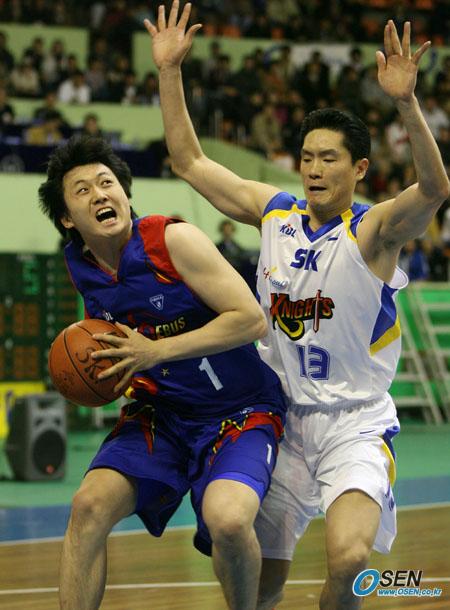 7일 잠실학생체육관에서 열린 2005-2006 KCC 프로농구 서울 SK와 울산 모비스의 경기에서 모비스의 김동우(왼쪽)가 SK 전희철의 수비를 받으며 골밑 돌파를 노리고 있다./잠실학생체=박영태 기자 ds3fan@osen.co.kr [Copyright ⓒ 한국 최고의 스포츠 전문 미디어 OSEN(www.osen.co.kr) 무단전재 및 재배포 금지]
