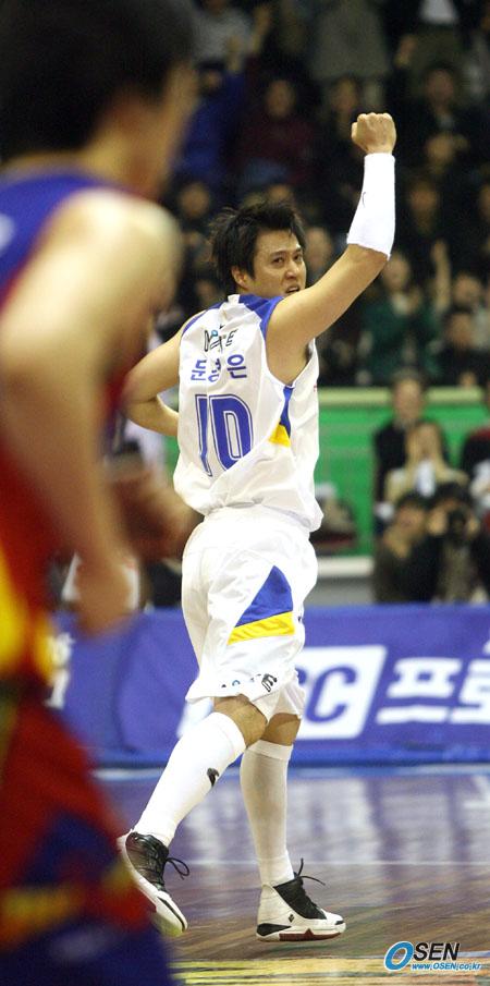7일 서울 잠실학생체육관에서 열린 2005~2006 KCC 프로농구 서울 SK와 울산 모비스의 경기에서 SK가 막판까지 박빙의 접전을 벌인 끝에 94-93으로 극적인 승리를 거뒀다. SK 문경은이 3점슛을 성공시킨 뒤 주먹을 불끈 쥐고 있다. 문경은은 이날 3점슛 6개 포함 20점을 올렸다./잠실학생체=박영태 기자 ds3fan@osen.co.kr [Copyright ⓒ 한국 최고의 스포츠 전문 미디어 OSEN(www.osen.co.kr) 무단전재 및 재배포 금지]