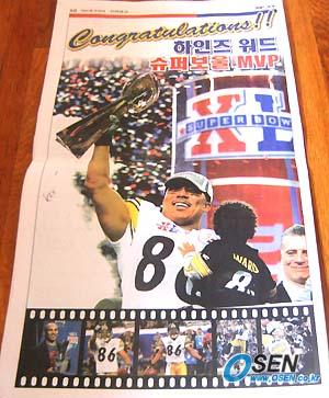 하인스 워드(29)의 미국 프로 미식축구(NFL) 결승전 '슈퍼볼' MVP 등극에 대해 현지 한인 사회도 깊은 관심을 보이고 있다. 특히 지난 8일(이하 한국시간) 미주판 엔 '하인스 워드의 슈퍼볼 MVP를 축하한다'는 내용의 전면 광고가 실리기도 했다(사진). 이에 대해 이 신문 관계자는 "광고주가 누구인지 신분 노출을 꺼려 밝히기 곤란하다. 다만 한국계란 사실은 확인해줄 수 있다"고 밝혔다. 즉 슈퍼볼 MVP로 미국은 물론 한국 내에서도 인지도가 상승한 워드의 성공을 축하하고 홍보하는 차원에서 광고가 등장한 것으로 볼 수 있다. 이밖에 LA의 한인 신문 가운데 가 8일 워드의 MVP 수상을 1면으로 다루는 등 비중있게 취급했다. 아울러 는 9일엔 워드의 어머니인 김영희(56) 씨를 애틀랜타에서 인터뷰한 기사를 실었다. 기사에서 김 씨는 "워드는 어렸을 때부터 내가 새벽 4시부터 일하느라고 바쁘면 나를 귀찮게 하지 않기 위해 혼자 침대에서 일어나 학교에 갔던 효자다. 또 한국 사람답게 김치 된장찌개 등 한국 음식을 좋아하고 터치다운을 해도 다른 선수들처럼 유난을 떠는 세리머니를 하지 않는다"고 아들을 소개했다. 로스앤젤레스=김영준 특파원 sgoi@osen.co.kr [Copyright ⓒ 한국 최고의 스포츠 전문 미디어 OSEN(www.osen.co.kr) 무단전재 및 재배포 금지]