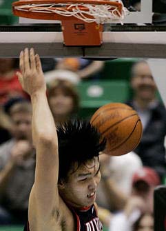 미국프로농구(NBA)에서 활약하고 있는 하승진(21.포틀랜드 트레일블레이저스)이 5경기만에 코트에 모습을 드러내 호쾌한 슬램덩크를 꽂는 등 4점을 올렸다. 하승진은 9일(이하 한국시간) 인디애나폴리스 콘세코필드하우스에서 열린 인디애나 페이서스와 원정 경기에서 7분48초간 뛰면서 덩크슛을 포함해 자유투로 4점을 뽑아냈다. 지난달 29일 골든스테이트 워리어전 이후 5경기를 쉰 하승진은 또한 또한 3개의 리바운드를 걷어올리고 어시스트와 블록슛도 한 개씩 기록하는 등 고른 활약을 펼쳤다. 팀이 57-77로 크게 두진 4쿼터 중반 자크 랜돌프와 교체 출전한 하승진은 곧바로 수비 리바운드을 잡아낸 뒤 동료 세바스찬에게 패스를 연결, 3점슛을 이끌어냈다. 가볍게 몸을 푼 하승진은 이어 공격 리바운드를 잡아내고 덩크슛까지 폭발시켰고, 인디애나의 데이비드 해리슨이 시도한 레이업슛을 블록슛으로 쳐냈다. 하지만 포틀랜드는 이날 경기에서 인디애나에 69-101로 대패했다. 국영호 기자 iam905@osen.co.kr [Copyright ⓒ 한국 최고의 스포츠 전문 미디어 OSEN(www.osen.co.kr) 무단전재 및 재배포 금지]