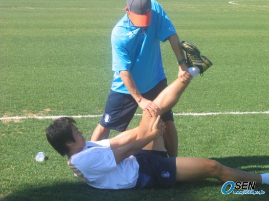 지난 9일 LA 갤럭시와의 평가전서 가벼운 부상을 당한 이동국이 10일 실시된 대표팀 공식 훈련에 참여하지 않은 채 트레이너로부터 몸을 점검 받고 있다./LA=김영준 특파원 sgoi@osen.co.kr [Copyright ⓒ 한국 최고의 스포츠 전문 미디어 OSEN(www.osen.co.kr) 무단전재 및 재배포 금지]