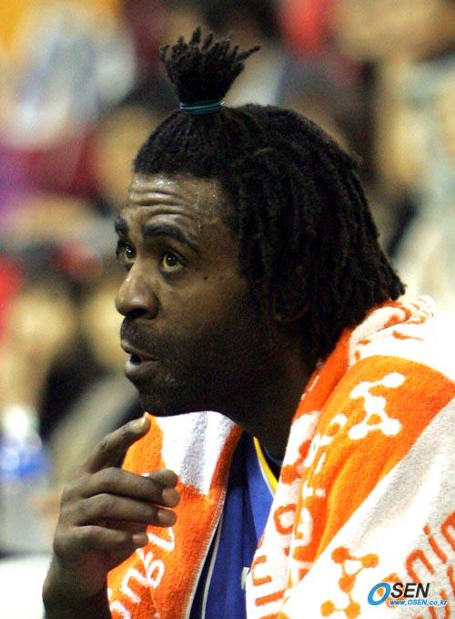 10일 잠실학생체육관에서 벌어진 2005~2006 KCC 프로농구 서울 SK와 서울 삼성의 라이벌전 2쿼터서 벤치에앉아 있는 삼성의 일시 대체 용병 클락이 머리를 고무밴드로 묶고 이색적인 모습을 보여주고 있다./잠실학생체=손용호 기자 spjj@osen.co.kr [Copyright ⓒ 한국 최고의 스포츠 전문 미디어 OSEN(www.osen.co.kr) 무단전재 및 재배포 금지]