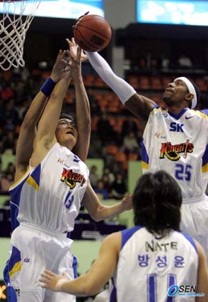 부산 KTF와 대형 트레이드로 방성윤이라는 걸출한 신인을 데려오긴 했지만 너무나 많은 선수들의 영입으로 호흡에 문제가 있었던 서울 SK. 하지만 어느덧 SK의 선수들은 서로 눈빛만 봐도 통하는 사이가 됐다. 서울 잠실학생체육관에서 10일 열린 서울 삼성과의 2005~2006 KCC 프로농구 정규리그 홈경기는 SK의 조직력이 얼마나 잘 들어맞고 있는지 여실히 보여주는 예였다. 이날 경기의 하이라이트는 데이먼 브라운의 덩크슛. 무려 6개의 덩크를 꽂아넣은 브라운은 특히 4쿼터 3분 24초 방성윤의 스틸로 맞은 찬스에서 임재현의 어시스트를 받아 앨리웁 백핸드 덩크슛을 꽂아넣으며 SK팬들을 열광시켰다. 경기가 끝난 뒤 가진 기자회견에서 브라운의 덩크를 어시스트한 임재현은 "평소에 장난식으로 연습해 본 기억은 나는데 이처럼 화려하게 될 줄은 몰랐다"며 "선수가 많이 바뀌었을 때는 다소 손발이 안맞는 구석이 있었는데 지금은 이제 서로 눈빛만 봐도 통한다"고 즐거워했다. 이어 임재현은 "너무나 많은 포워드가 있어 득점 루트가 다양해졌지만 서로 공을 달라고 요규하는 데다 특히 브라운이 화려한 공격을 선호해 일장일단이 있는 것 같다"며 "일단 나는 공을 소유하는 시간을 짧게 하면서 동료들의 공격을 밀어주고 수비에 치중하는 등 궂은 일을 하려고 한다"고 덧붙였다. 게다가 이날 SK가 승리할 수 있었던 요인은 골밑 싸움에서 완승을 거뒀다는 점. 유독 3점슛 능력이 있는 포워드가 즐비한 SK지만 이날 만큼은 21차례 3점슛 시도 중 림을 통과한 것이 4개에 그칠 정도로 외곽슛이 터지지 않았다. 오히려 15번의 시도 중 9번이나 3점슛을 성공시킨 삼성이 앞섰을 정도. 그러나 SK는 브라운과 주니어 버로, 방성윤 등 선수 전원이 골밑에서 리바운드 싸움을 벌이며 올루미데 오예데지가 부상으로 빠져 골밑이 급격하게 약해진 삼성을 요리, 리바운드 숫자에서도 38-22로 월등하게 앞섰다. 삼성의 주득점원인 네이트 존슨을 철벽같이 막은 것도 SK가 승리할 수 있었던 원동력이었다. 이날 존슨은 무려 4개의 턴오버를 범하며 고작 12득점에 그쳤고 파울도 4개나 범하면서 SK의 공격을 제대로 막지 못했다. 또 삼성은 이규섭과 서장훈이 각각 턴오버 3개씩을 기록하는 등 무려 14개의 실책을 범하며 SK에게 승리를 내줄 수밖에 없었다. 잠실학생체=글, 박상현 기자 tankpark@osen.co.kr 사진, 손용호 기자 spjj2osen.co.kr [Copyright ⓒ 한국 최고의 스포츠 전문 미디어 OSEN(www.osen.co.kr) 무단전재 및 재배포 금지]