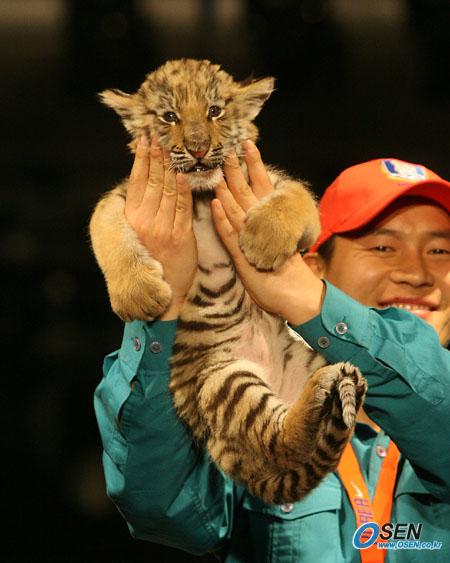 13일 오후 서울 삼성동 코엑스 아셈타워 그랜드 볼룸에서 열린 2006 국가대표 축구팀 유니폼 발표회가 열렸다. 새 유니폼 발표에 이어 국가대표팀 문장에 들어있는 호랑이 새끼가 등장했다./박영태 기자 ds3fan@osen.co.kr [Copyright ⓒ 한국 최고의 스포츠 전문 미디어 OSEN(www.osen.co.kr) 무단전재 및 재배포 금지]