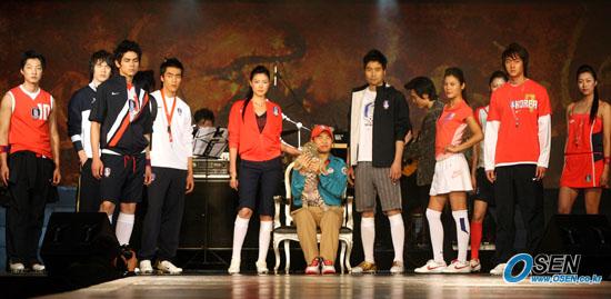 13일 오후 서울 삼성동 코엑스 아셈타워 그랜드 볼룸에서 열린 2006 국가대표 축구팀 유니폼 발표회가 열렸다. 유니폼 발표에 이어 아기 호랑이를 중심으로 남녀 모델들이 도열해 있다./박영태 기자 ds3fan@osen.co.kr [Copyright ⓒ 한국 최고의 스포츠 전문 미디어 OSEN(www.osen.co.kr) 무단전재 및 재배포 금지]