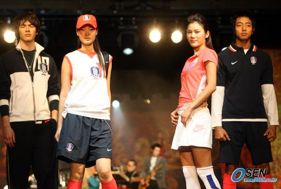 13일 오후 서울 삼성동 코엑스 아셈타워 그랜드 볼룸에서 열린 2006 국가대표 축구팀 유니폼 발표회가 열렸다. 유니폼 발표에 이어 남녀 모델들이 트레이닝복을 입고 워킹하고 있다./박영태 기자 ds3fan@osen.co.kr [Copyright ⓒ 한국 최고의 스포츠 전문 미디어 OSEN(www.osen.co.kr) 무단전재 및 재배포 금지]