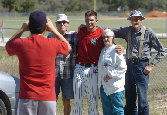 플로리다주 포트샬럿 캠프에서 훈련 중인 기아 새 외국인 타자 마이크 구경 나온 인근 주민들과 기념 사진을 찍고 있다. 서브넥은 메이저리그 경력은 없지만 2004년 더블A 올스타, 2005년 트리플A 올스타에 선정된 바 있어 유망주들을 좇는 미국 야구 팬들에겐 인기가 많다. /기아 타이거즈 제공 [Copyright ⓒ 한국 최고의 스포츠 전문 미디어 OSEN(www.osen.co.kr) 무단전재 및 재배포 금지]