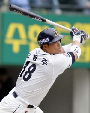 '예비 FA' 시즌의 막을 열기에는 더없이 좋은 출발이다. 두산 주포 김동주(30)가 2006년 들어 첫 연습경기인 자체 청백전에서 홈런을 터뜨렸다. 일본 쓰쿠미에서 전지훈련 중인 두산은 14일 쓰쿠미 시민구장에서 캠프 시작후 첫 자체 청백전을 가졌다. 캠프 중후반을 철저히 실전 위주로 치르기로 한 두산은 이날 경기를 시작으로 다음달 8일 귀국하기 전까지 22일간 17번의 청백전 및 연습경기를 치른다. 이날 경기에서 청팀 4번 타자-3루수로 선발 출장한 김동주는 2회 첫 타석에선 백팀 선발 김명제에게 유격수 땅볼로 물러났지만 5회 두번째 타석에선 선두타자로 나서 시민구장 좌중간 담장을 넘기는 약 130m 짜리 솔로홈런을 터뜨렸다. 상대 투수는 2년차 우완 박정배. 김동주는 6회 세번째 타석에선 2사 2루에서 역시 박정배를 상대로 좌전 적시타를 날려 타점을 추가했다. 3타수 2안타 2타점. 다음달 월드베이스볼클래식(WBC)에 한국 대표팀으로 출전하는데다 올 시즌이 끝나면 FA로 대박을 노리게 될 김동주로선 청백전에 불과할 지라도 기분 나쁘지 않은 출발이다. 3루수 거포는 8개 구단 모두가 탐내는 '품목'이지만 김동주는 지난해 왼쪽 종아리 부상으로 데뷔후 가장 적은 94경기에 출장해 홈런(10개) 타점(50개)도 데뷔후 최저치를 기록, WBC와 다가올 시즌에 무언가를 보여줘야할 필요가 있다. 김동주는 지난해 부진에도 불구하고 지난달 말엔 두산 역대 최고 연봉인 4억2000만원에 재계약, 이래저래 어깨가 무거운 상황이다. 이날 경기에선 양팀 선발로 나선 서동환과 김명제가 각각 2이닝을 무실점으로 막아 무난히 첫 발을 내디뎠다. 좌완 금민철도 중간계투로 2이닝을 연속 삼자범퇴 처리했다. 이종민 기자 mini@osen.co.kr [Copyright ⓒ 한국 최고의 스포츠 엔터테인먼트 전문 미디어 OSEN(www.osen.co.kr) 무단전재 및 재배포 금지]