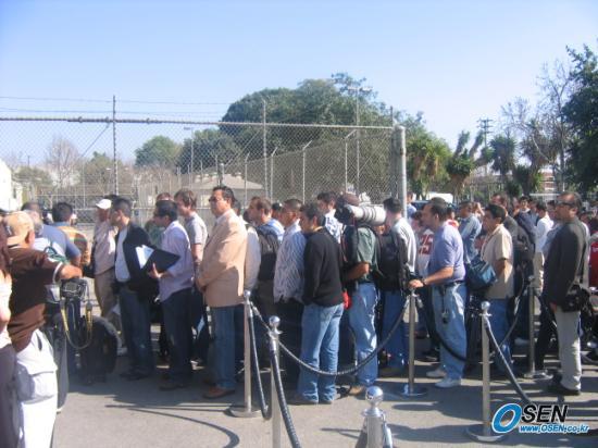 멕시코 대표팀이 한국과의 평가전을 하루 앞두고 15일 연습을 가진 로스앤젤레스 메모리얼 칼러시엄을 찾은 100여 명의 멕시코 보도진이 취재 패스를 받기 위해 줄을 서 있다./로스앤젤레스=김영준 특파원 sgoi@osen.co.kr [Copyright ⓒ 한국 최고의 스포츠 엔터테인먼트 전문 미디어 OSEN(www.osen.co.kr) 무단전재 및 재배포 금지]