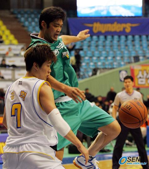14일 잠실체육관에서 벌어진 2005-2006 KCC 프로농구 서울 삼성 썬더스와 원주 동부 프로미의 경기서 동부의 양경민이 삼성 강혁의 밀착 방어에 볼을 놓치고 있다./잠실체=주지영 기자 jj0jj0@osen.co.kr [Copyright ⓒ 한국 최고의 스포츠 엔터테인먼트 전문 미디어 OSEN(www.osen.co.kr) 무단전재 및 재배포 금지]