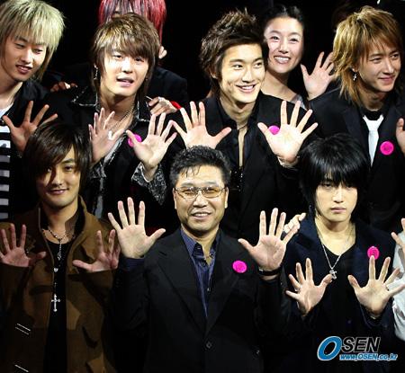 15일 저녁 서울 청담동 클럽 아이에서 SM엔터테인먼트 창사 10주년 기념행사가 열렸다. 이수만 SM 대표와 소속 연예인들이 10년의 의미로 일제히 열 손가락을 펴보이고 있다./박영태 기자 ds3fan@osen.co.kr [Copyright ⓒ 한국 최고의 스포츠 엔터테인먼트 전문 미디어 OSEN(www.osen.co.kr) 무단전재 및 재배포 금지]