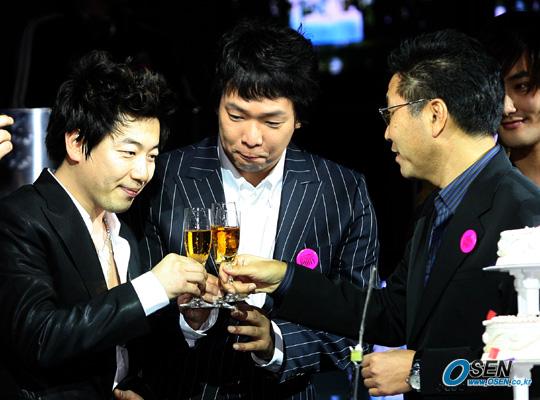 이수만 SM엔터테인먼트 이사가 “갈갈이패밀리와 손지창-오연수 부부는 연예인으로서의 계약이 아닌 프로듀서로 SM과 계약했다”고 밝혔다. 이 이사는 지난 15일 서울 청담동 호텔리베라 클럽 아이에서 열린 ‘SM엔터테인먼트 창립 10주년 기념 비전 선포식’에서 갈갈이패밀리를 비롯한 개그맨들과 손지창-오연수 부부에 대해 “앞으로 신인발굴 및 다양한 콘텐츠를 ‘프로듀싱’하는 ‘프로듀서’가 존재하는 회사를 만들기 위해 이들을 영입하게 됐다”고 설명했다. 단지 연예인이라는 개념을 넘어서 콘텐츠를 공동으로 제작하는 파트너의 입장으로 마주 대할 예정이라는 것. SM엔터테인먼트는 이미 지난해 말부터 탤런트, MC, 개그맨에 대한 매니지먼트를 시작, 올해에도 각 분야의 많은 연예인들과 계약을 체결해 아시아 최고의 기획사로 성장할 계획을 세우고 있다. 15일 열린 'SM엔터테인먼트 창립 10주년 기념 및 비전 선포식'에서 이수만 이사(오른쪽)가 개그맨 박준형(가운데)와 건배하고 있다. 글=김지연 기자 hellow0827@osen.co.kr, 사진=박영태 기자 ds3fan@osen.co.kr [Copyright ⓒ 한국 최고의 스포츠 엔터테인먼트 전문 미디어 OSEN(www.osen.co.kr) 무단전재 및 재배포 금지]